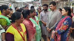 As part of the visit, Shri C.M. Ramesh and his wife took part in the Brandix India Scholarship Distribution Ceremony, where they presented educational materials to children of associates. The gesture highlighted Brandix’s continued commitment to community development and inclusive growth. The scholarship event saw participation from Doraswamy, Brandix India Partner; Udaya Perera, Country Head; Shiran Boteju, COO; along with unit GMs and team members.